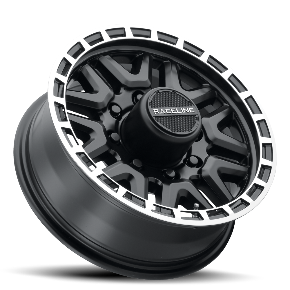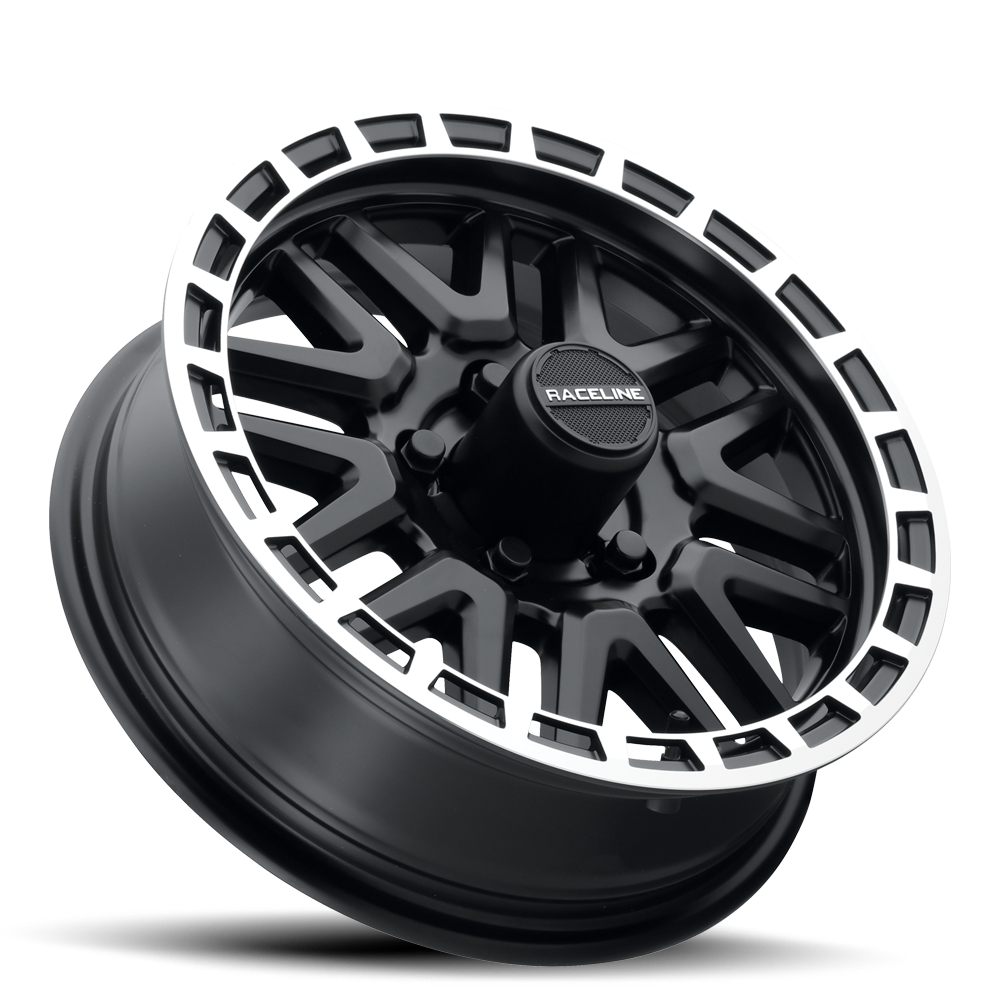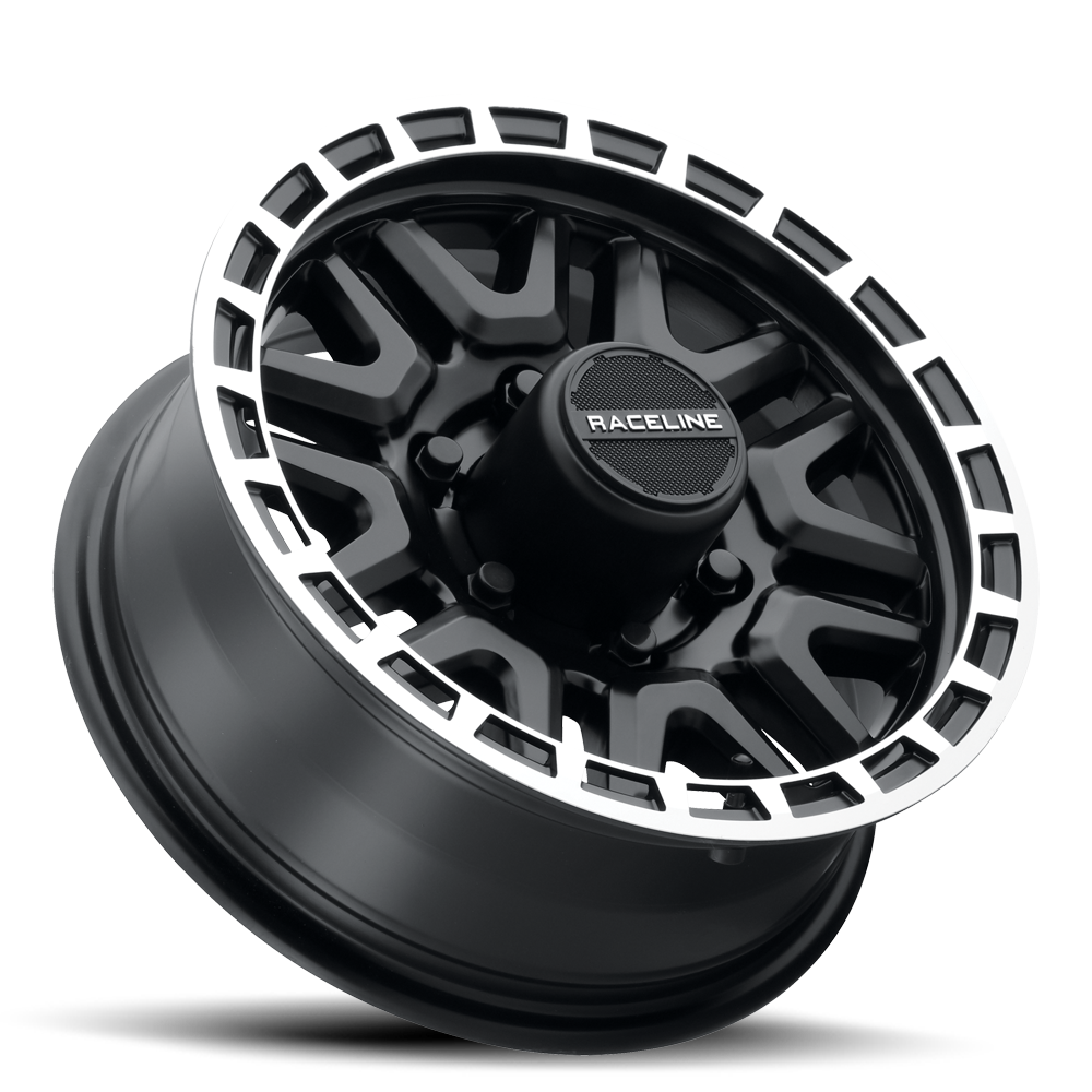• Includes a satin black push thru cap with embossed chrome Raceline logo